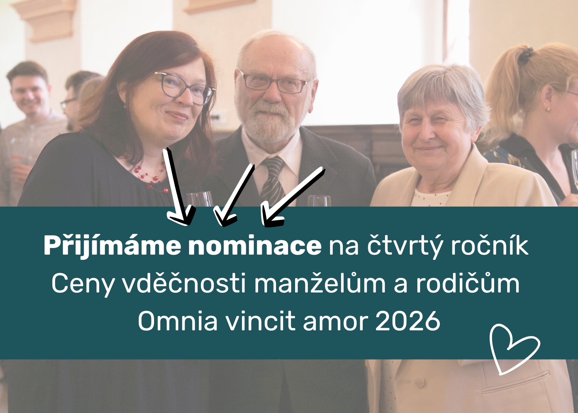 Zároveň bych chtěla vyzvat ty z Vás, pro něž jsou jejich rodiče inspirativním manželským párem, abyste se nám ozvali s jejich příběhem a případnou nominací na již čtvrtý ročník udílení Ceny vděčnosti manželům a rodičům Omnia vincit amor 2026. Stačí odpovědět na tento e-mail. Letos budeme cenu udělovat den před Mezinárodním dnem rodiny, tedy ve čtvrtek 14. 5. v Praze. (Abychom si dobře rozuměli, Vaši rodiče nemusí být mimořádným párem ve smyslu společných projektů, svých či adoptovaných dětí, zásluh o všemožné dobro. Měli by být hlavně dobrým příkladem Vám i Vašim sourozencům v tom, že žít v manželství a mít děti je sice někdy náročná, ale zároveň naplňující a dobrá životní cesta.) Smyslem udílení této ceny je nejen ocenění konkrétních párů, ale především osvěta o těchto často nenápadných hrdinech, kteří jsou skutečnými základy naší společnosti. Protože manželství a rodina za to přes všechny těžkosti stojí .